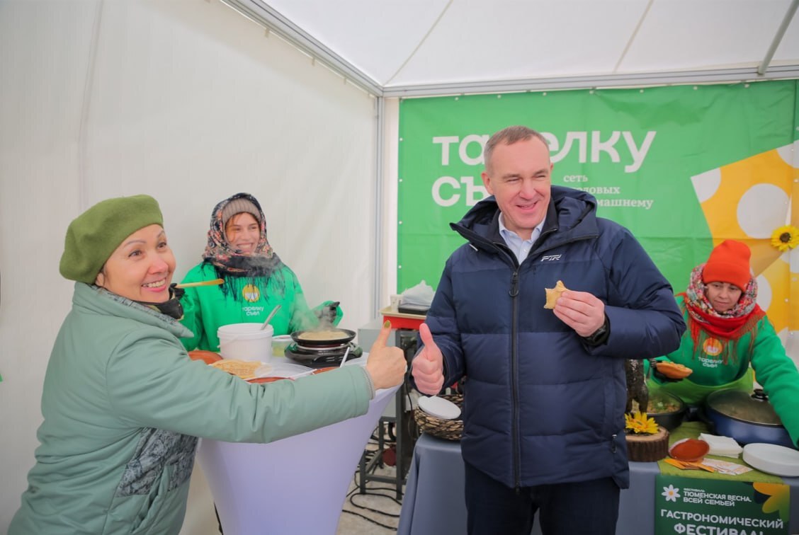 Хочу поблагодарить наших рестораторов, которые творчески подготовились к гастрофестивалю "Гуляй, Масленица!". Для дегустаций они напекли блины с оригинальными начинками. Использовались домашние и восстановленные старинные рецепты известных земляков, также кулинары рассказывали тюменцам о "высокой кухне", где до мелочей продумана подача и используются высококачественные ингредиенты. Только представьте: блины тыквенные с кремом и пухом из пармезана, блины Григория Распутина с припеком и груздями, блины менделеевские гречишные с телячьими щечками. На площадках праздника я поздравил всех участников с весенним фестивалем и поблагодарил тех, кто работает здесь для тюменцев три дня.