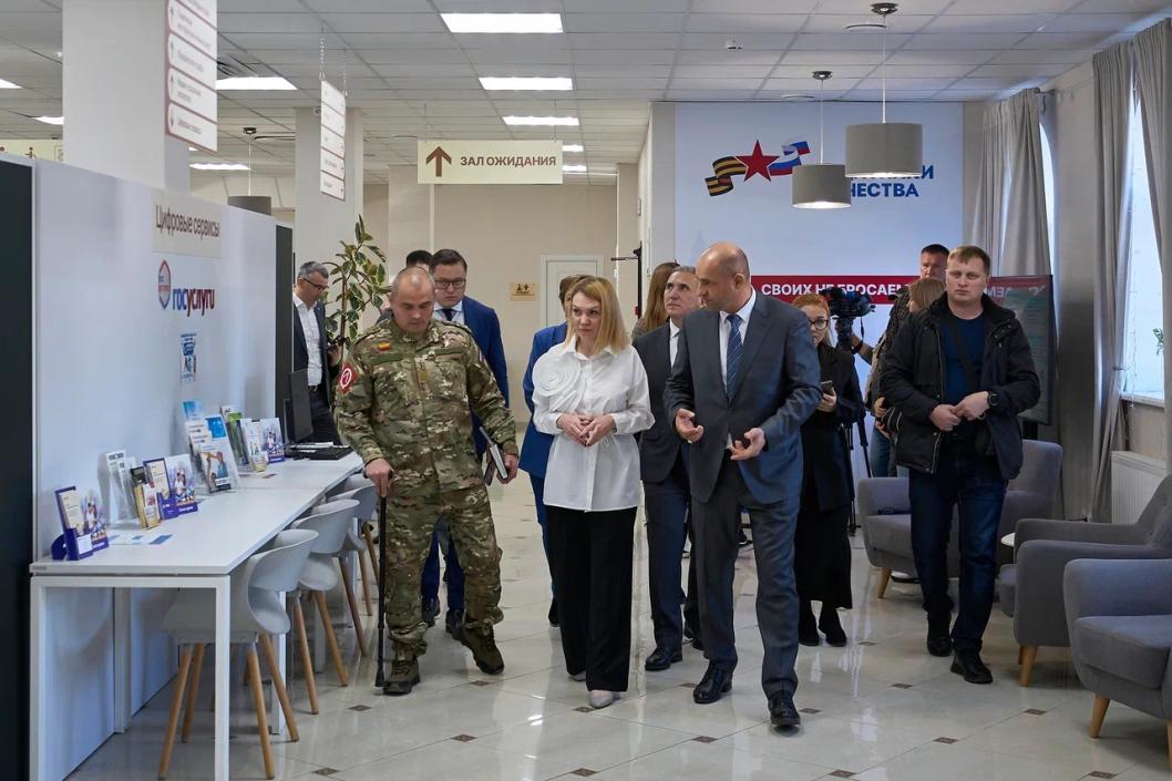 Глава регионального фонда Динара Поштаренко представила полпреду меры поддержки, реализуемые для участников СВО и их семей. Артем Жога также познакомился с сотрудниками филиала и их работой в режиме «одного окна», где оказывается первичная помощь. Работники фонда продемонстрировали возможности учреждения в области психологической и психотерапевтической помощи, а также оборудование, на котором раненые бойцы проходят процесс адаптации.