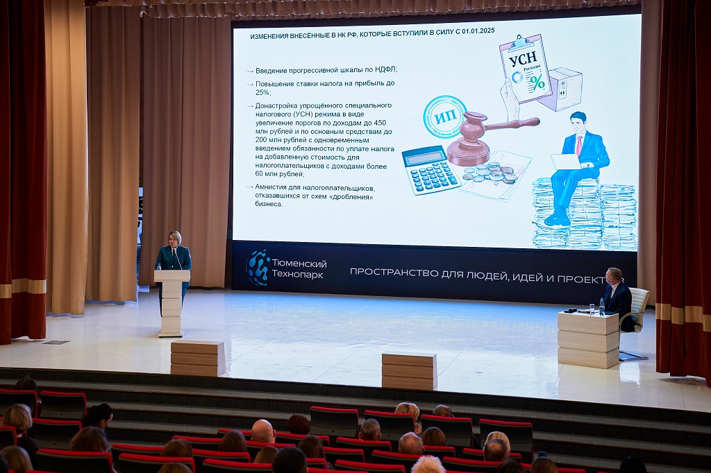 4 февраля заместитель руководителя УФНС России по Тюменской области Ольга Иванова выступила с докладом на пленарной сессии Единого дня консультаций предпринимателей, организованного службой Уполномоченного по защите прав предпринимателей в Тюменской области, при поддержке ТРО Общероссийская общественная организация «Деловая Россия».
