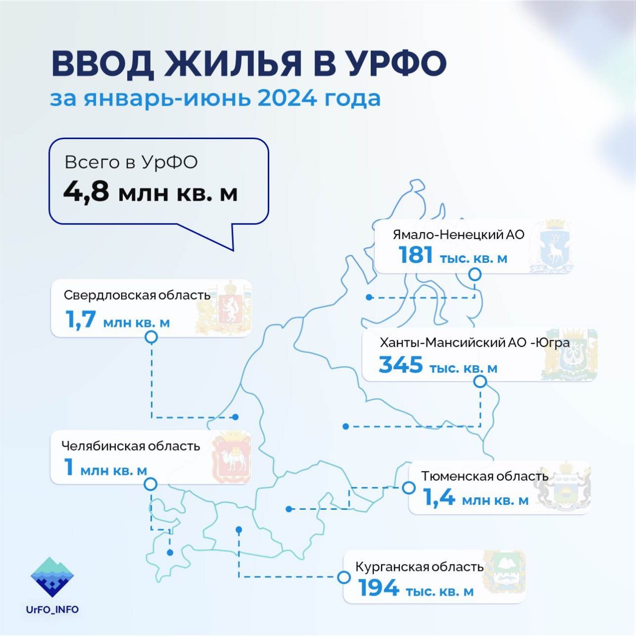 По поручению президента полпред Владимир Якушев держит на контроле вопросы жилищного строительства в регионах УрФО. По данным Росстата, в январе-июне 2024 года в округе введено в эксплуатацию более 4,8 млн квадратных метров жилья. Это на 12,3% больше, чем за январь-июнь 2023 года.