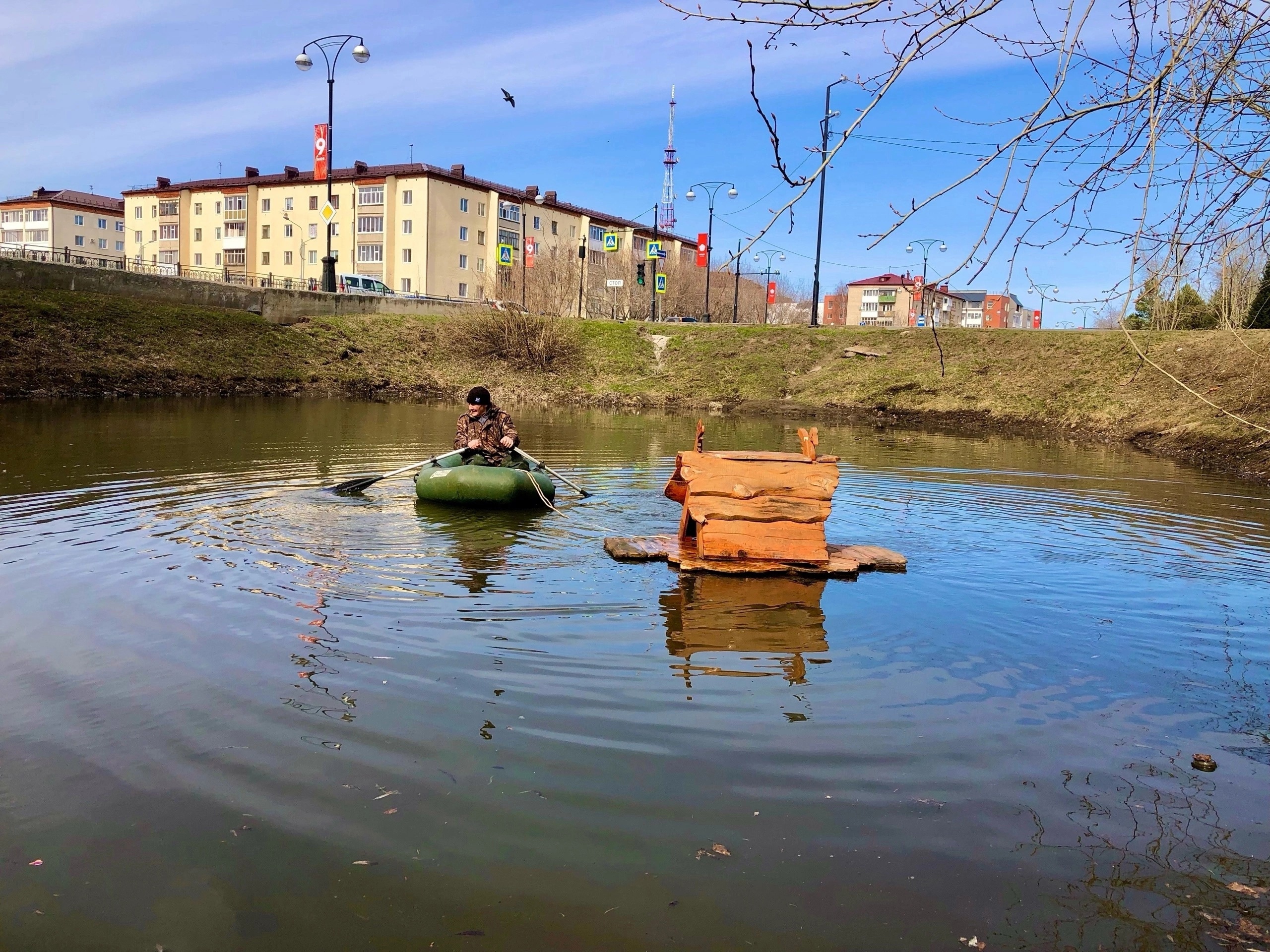 Зимой Олег забрал домик на хранение до следующего сезона. Специалисты его осмотрели, подремонтировали и вчера вновь принесли на предварительно очищенный от мусора и веток пруд, где уже поселились первые птицы, вернувшиеся с зимовки в тёплых краях.