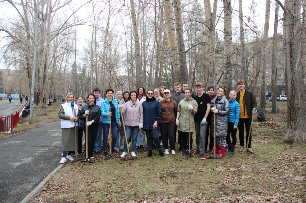 В уборке приняли участие студенты, преподаватели и специалисты вуза. Они сгребали прошлогоднюю листву и убирали мусор.