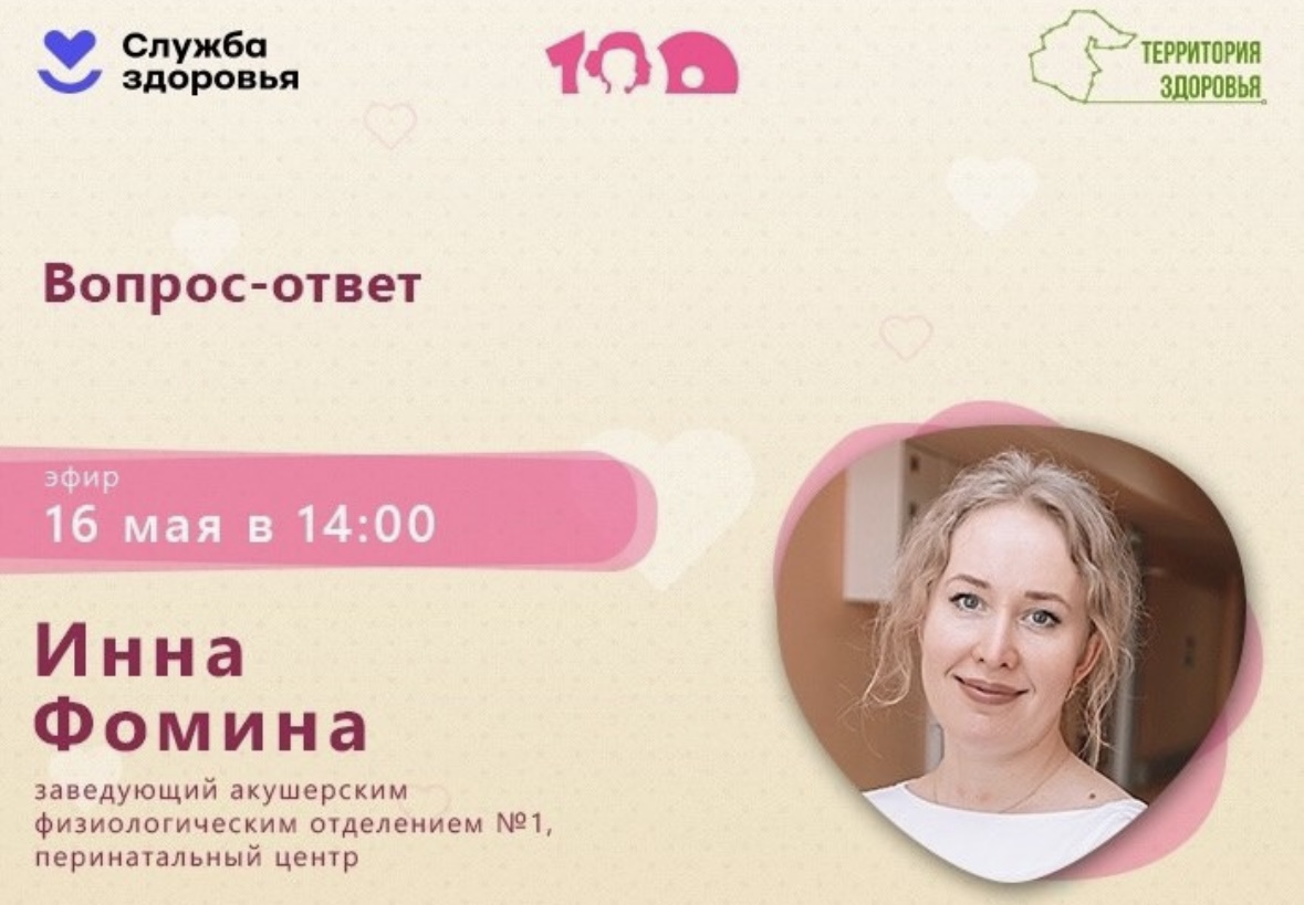 В Тюмени в рамках проекта «Мама на все 100» состоится онлайн-встреча с заведующей акушерским физиологическим отделением № 1 Перинатального центра Инной Фоминой.